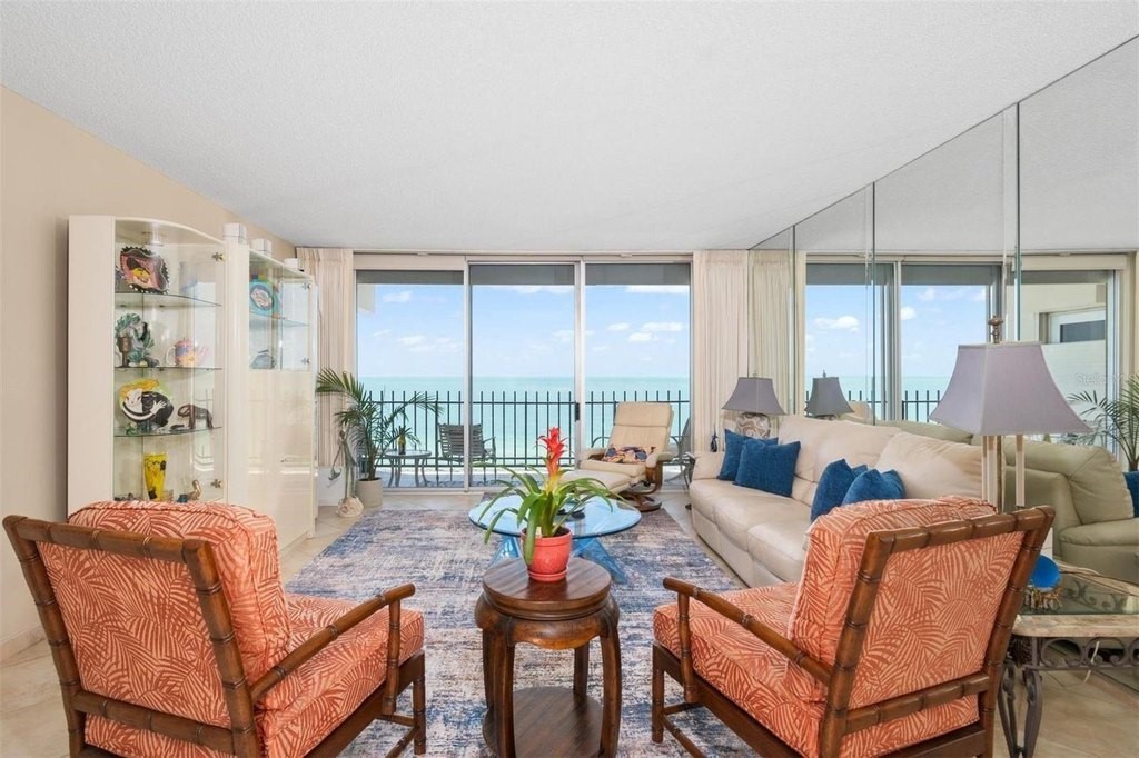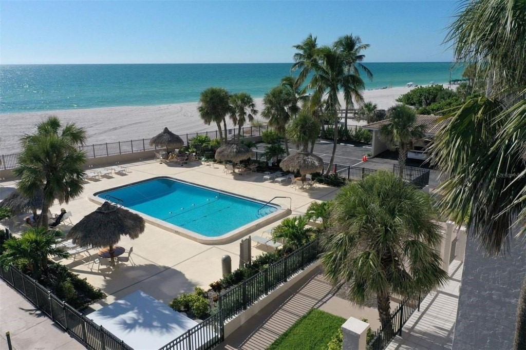 Spectacular Panoramic Ocean Views Await you from this DIRECT BEACHFRONT corner unit with both southside and eastside balconies. This spacious light and bright 2 bed/2 bath unit with open floor plan offers 1,536 sf of living space and is located at The Lido Beach Club on beautiful Lido Key. Wake up each morning to sweeping Gulf views and the soothing sound of waves. Enjoy miles of pristine soft white sand and shimmering aqua waters from two private balconies—perfect for watching Sarasota’s world-famous sunsets! This resort-style community offers every amenity imaginable: a sparkling pool, a pickleball court, a state-of-the-art fitness center, and a spacious community meeting room with a full kitchen ideal for Super Bowl & Holiday events. Secure access, on-site management, and plenty of guest and vendor parking add peace of mind. Step outside to embrace the Florida lifestyle—swim, boat, kayak, or simply relax on the beach with your favorite drink. Hop aboard the complimentary Wave Runner Trolley just steps away and explore nearby St. Armands Circle with its world-class shops, fine dining, and lively events. You are minutes to Sarasota’s vibrant arts scene, renown live theaters, and championship golf courses. This is coastal living at its finest. Come relax and enjoy the lifestyle you have always dreamed of!